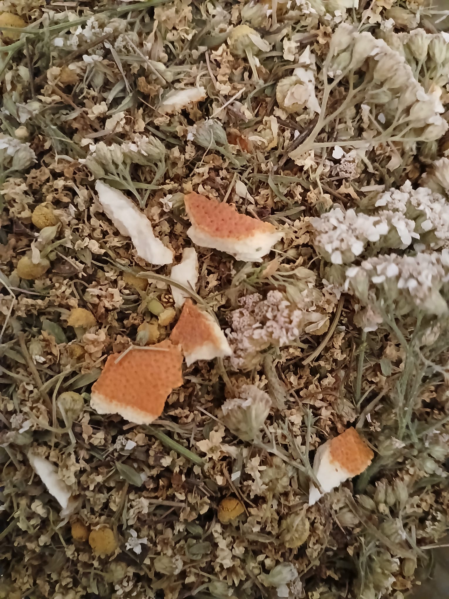 composition : fleurs de sureau, sommités fleuries de serpolet, fleurs de matricaire, sommités fleuries d’achillée millefeuille, écorce d’orange